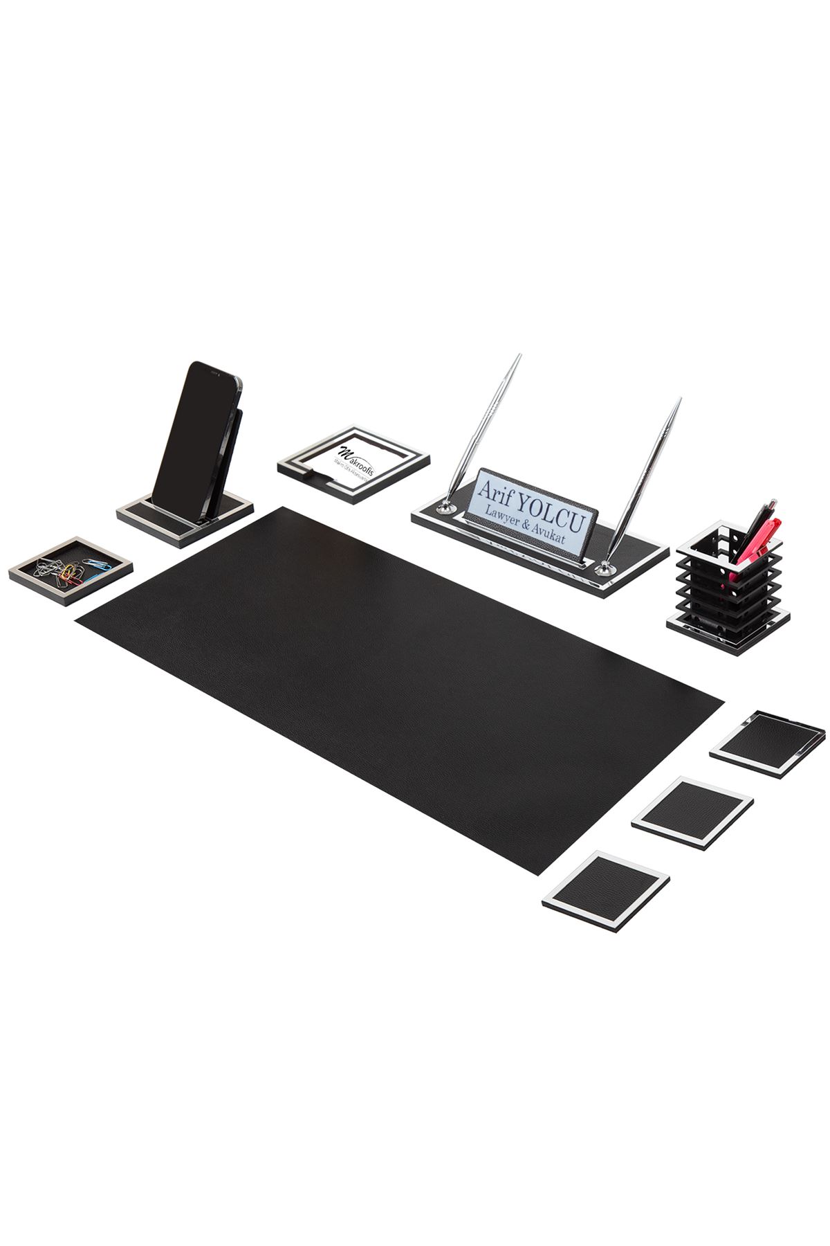 Ürün Bilgisi Modern ve minimalist tasarım, yüksek kaliteli deri malzeme ve tamamen profesyonel el işçiliği ile kişiye özel hazırlanan Diamond Silver Sümen Takımı içerisinde ihtiyaç duyabileceğiniz 10 parça ofis aksesuarından oluşmaktadır. İsimlik tabelası, 9 farklı font seçeneği ile üretilebilir ve özelleştirilebilir niteliktedir.Teknik Özellikler