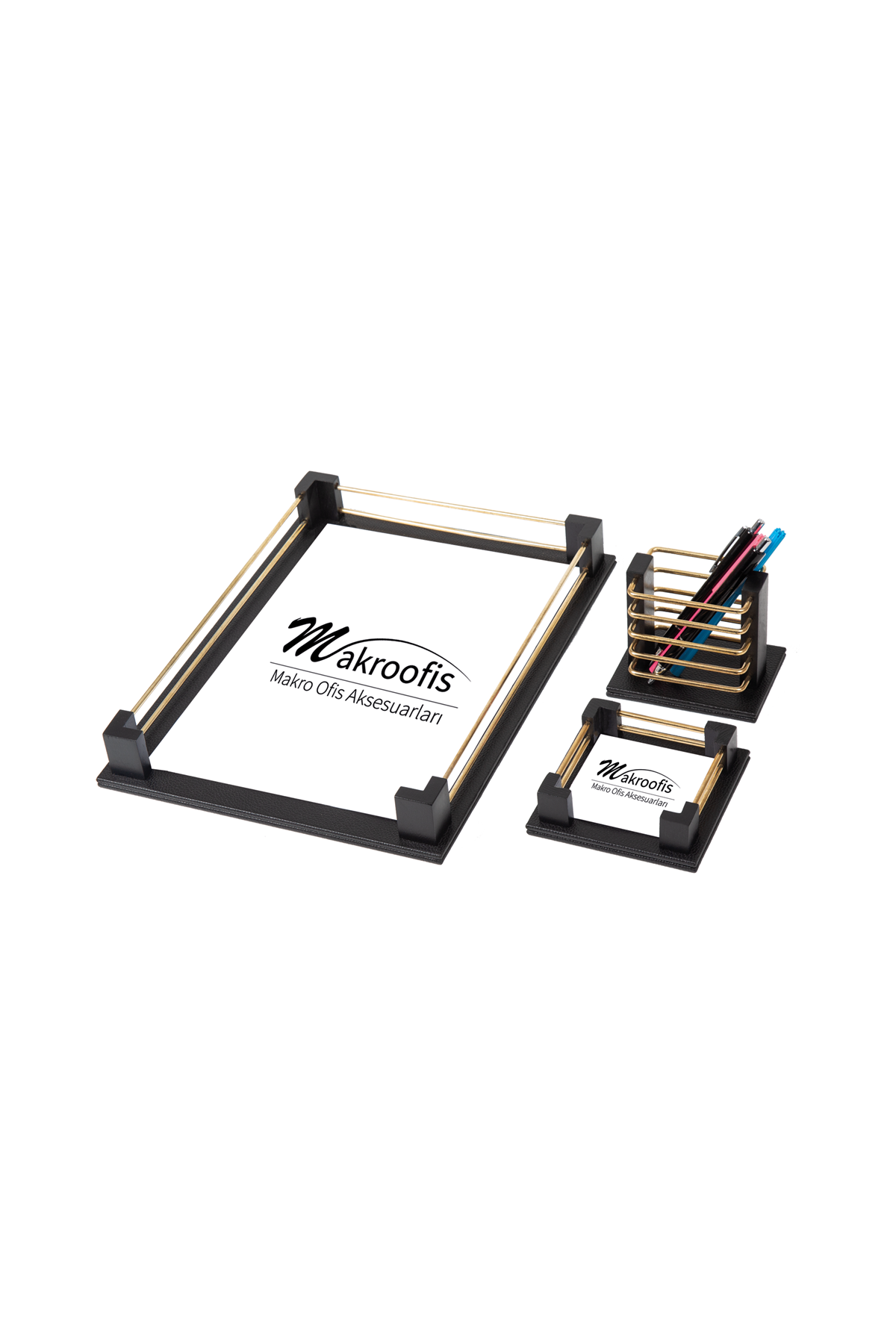 Ofis masanızda düzeni sağlamak ve estetik bir görünüm oluşturmak için tasarlanan bu 3 parçalı masa üstü ofis seti, minimal tasarımı ve kaliteli malzemesiyle öne çıkıyor. Gerek home ofislerde gerek kurumsal çalışma alanlarında sade ama etkileyici bir masa düzeni isteyenler için ideal bir tercihtir.