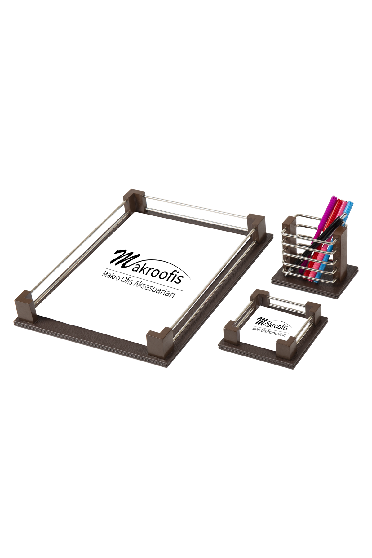 Eko500 Deri Evrak Raf Notluk Kalemlik Seti Kahve Gümüş Aksesuar