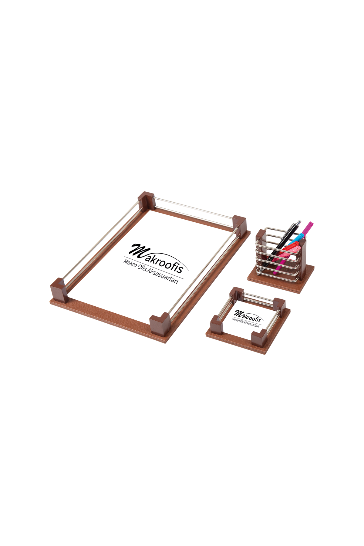 Eko500 Deri Evrak Raf Notluk Kalemlik Seti Taba Gümüş Aksesuar