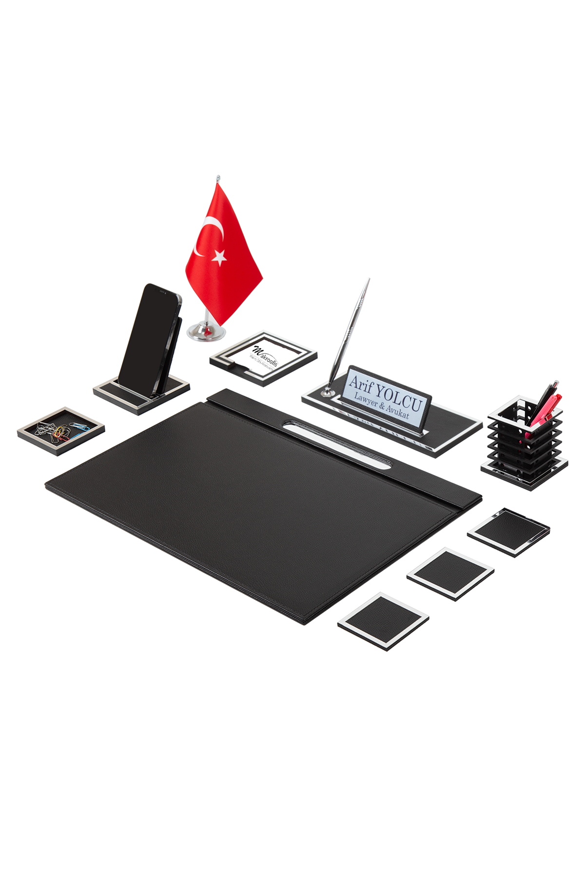 Lİna Silver ile masa üstü ihtiyaçlarınızı karşılarken, ziyaretçilerinize isminizi ve ünvanınızı gösterin: Ofisinizde çalışma masanızın üzerinde mobilyalarınıza uyumlu deri Sümen Takımı ile makamınızda sizi ziyaret eden kişilere profesyonel ve şık bir görünüm sunarken, isminiz ve ünvanınızı gösteren sade ve şık bir isimlik ile birlikte bir dizi masa üstü ofis aksesuarından oluşan yeni nesil Sümen Takımı sunuyoruz. Sümen Takımları, ofisinizde profesyonel bir görünüm sağlar. Masa üstü günlük işlerinizde iş akışınızı kolaylaştırıcı etkiye sahiptir. Masanızın çizilmesini ve yıpranmasını önler. Masa Sümeni üzerinde yazı yazmak, çizim yapmak gibi işlemleri gerçekleştirmek için pürüzsüz ve düz bir zemin sunar. Diğer ofis mobilyaları ile uyum sağladığında son derece prestijli bir görünüm elde edilebilir. Sümen takımları, iş akışınızı düzenli ve verimli hale getirdiği yönüyle profesyonellerin vazgeçilmezidir.