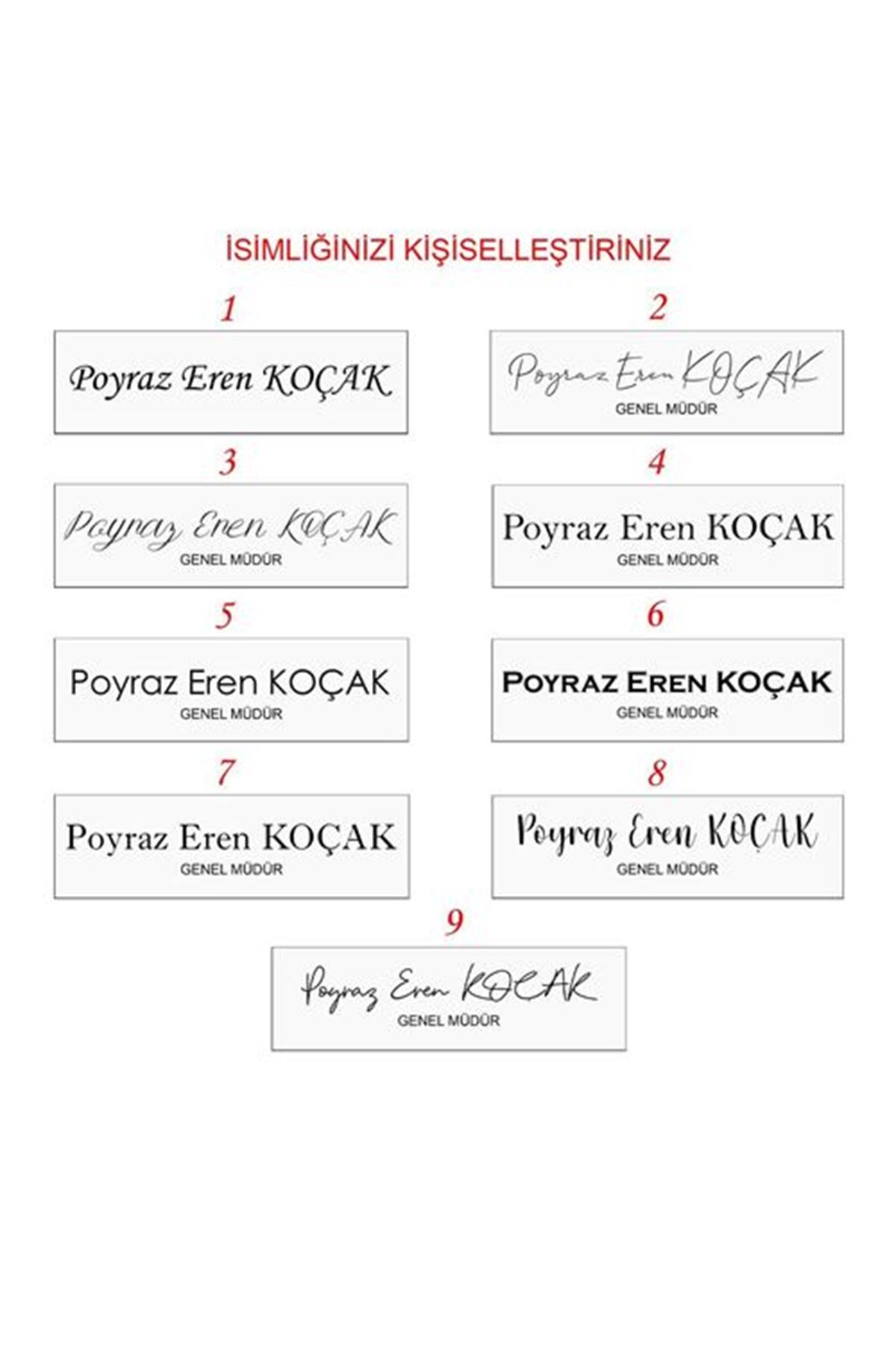 İsimliğe yazılacak yazı fontunu ve şablonu görseller içinden inceleyerek tercihiniz ile beraber ad soyad ve varsa ünvan bilgilerinizle bize yazmayı unutmayın.Sümen takımı mükemmel bir ofis hediyesi, yeni iş hediyesi ve özel günler için çok özel bir hediye olarak tercih edilmektedir.